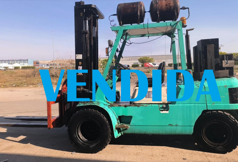 Se vende carretilla elevadora Mitsubishi FD50. Es una carretilla usada, que presenta señales de uso. - Marca: Mitsubishi - Modelo: FD50 - Tipo: Carretilla elevadora - Estado: Usada Se vende con volteador para 5tn, lanza para el enganche de semiremolques, palas largas y desplazador lateral. La maquina es recuperada de la dana arranca perfecta y se puede hacer uso de ella sin problemas.La parte electrica hay que revisarla. La maquina dispone de OCA de antes de la dana.